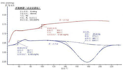 差示掃描量熱法(Differential Scanning Calorimetry)是在程序控溫下,測量輸入到物質(zhì)與參比物質(zhì)之間的功率差與溫度(或時(shí)間)關(guān)系的一種方法。DSC 在試樣和參比物容器下裝有兩組補(bǔ)償加熱絲,當(dāng)試樣在加熱過程中由于熱效應(yīng)與參比物之間出現(xiàn)溫差ΔT 時(shí),可通過差熱放大電路和差動(dòng)熱量補(bǔ)償放大器,使流入補(bǔ)償電熱絲的電流發(fā)生變化,而使兩邊熱量平衡,溫差ΔT 消失,并記錄試樣和參比物下兩只電熱補(bǔ)償?shù)臒峁β手铍S溫度(或時(shí)間)的變化關(guān)系,并根據(jù)這種變化關(guān)系,可研究分析材料的物理化學(xué)及熱力學(xué)性能。DSC 的應(yīng)用廣泛,但在PCB 的分析方面主要用于測量PCB 上所用的各種高分子材料的固化程度(例如圖2)、玻璃態(tài)轉(zhuǎn)化溫度,這兩個(gè)參數(shù)決定著PCB 在后續(xù)工藝過程中的可靠性。