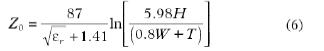 公式(6)可以用于計(jì)算一塊FR4板的特征阻抗。