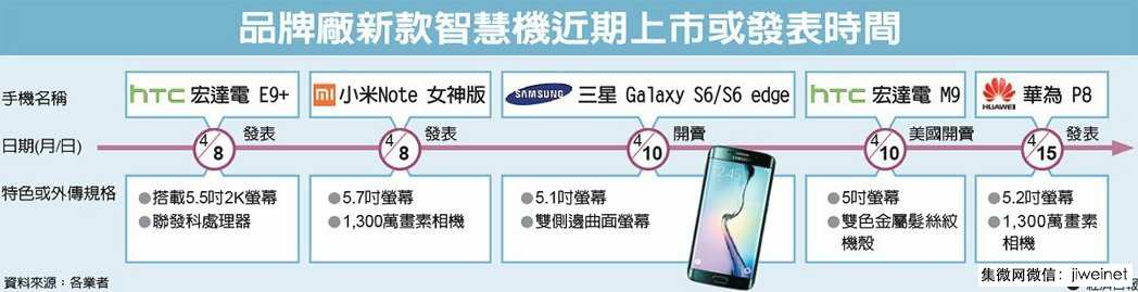 本周起宏達(dá)電HTC One M9、E9+,以及三星新機(jī)Galaxy S6/S6 edge上市,加上8日小米歡慶米粉節(jié),以及15日華為發(fā)表新機(jī)P8,大立光、聯(lián)發(fā)科等相關(guān)供應(yīng)鏈忙出貨,擺脫傳統(tǒng)淡季的“五窮”魔咒。