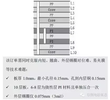 圖1為從美市場搶回的一個(gè)10層剛撓結(jié)合板的訂單難度情況描述:
