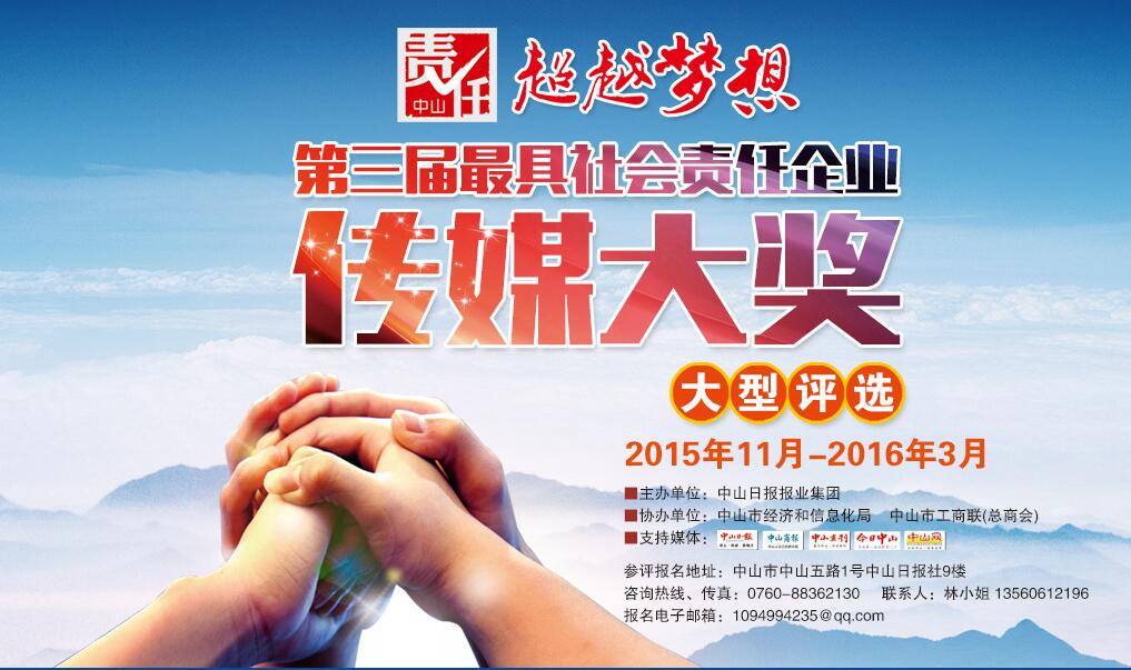 “超越夢想·三屆具社會責任企業(yè)傳媒大獎”由中山日報報業(yè)集團主辦,市經(jīng)信局、市工商聯(lián)(總商會)協(xié)辦,以廣東省社科院、中山市經(jīng)濟研究院作為智囊機構。自去年12月啟動以來,活動得到了企業(yè)的積極響應,終共有近百家企業(yè)報名,經(jīng)過初步篩選,共有75家企業(yè)入圍。本次傳媒大獎共設置綜合獎 “具社會責任感傳媒大獎”,單項獎——“具品牌價值企業(yè)傳媒大獎”、“具慈善精神企業(yè)傳媒大獎”、“具創(chuàng)新能力企業(yè)傳媒大獎”、“佳環(huán)保綠色企業(yè)傳媒大獎”。中山日報報業(yè)集團副社長、總經(jīng)理劉廷玉表示,傳媒大獎進行到三屆,已深切地感受到企業(yè)對社會責任越來越重視,報名越來越踴躍,企業(yè)的參評材料也越來越規(guī)范,這表明中山企業(yè)的社會責任意識逐漸增強。