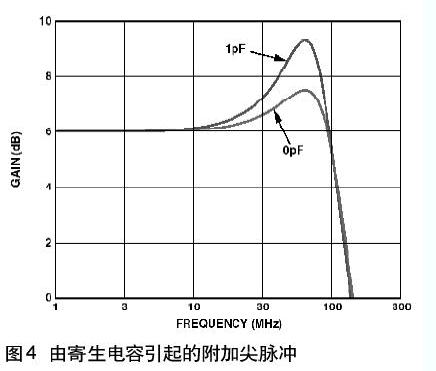 在高速電路中,很小的值就會影響電路的性能。有時候幾十個皮法(pF)的電容就足夠了。相關(guān)實例:如果在反相輸入端僅有1pF的附加寄生電容,它在頻率域可以引起差不多2dB的尖脈沖(見圖4)。如果寄生電容足夠大的話,它會引起電路的不穩(wěn)定和振蕩。杭州PCB|杭州smt